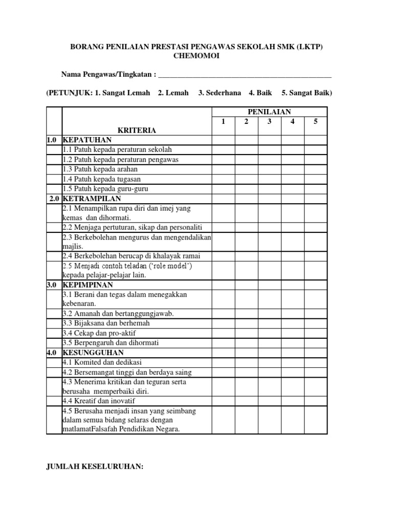 Informasi Pendidikan Contoh Borang Penilaian Murid Kokurikulum