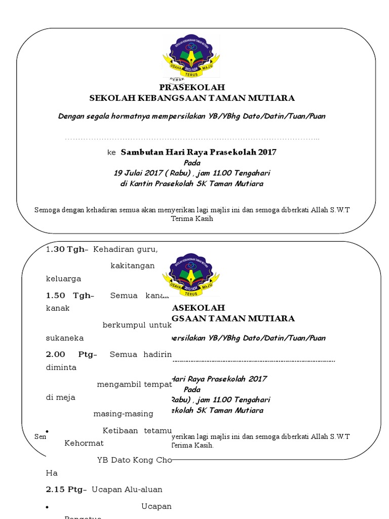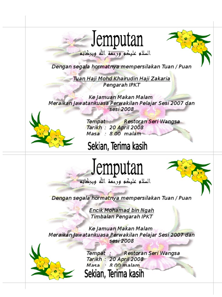 Doc Kad Jemputan Jamuan Smk Bakai Academia Edu
