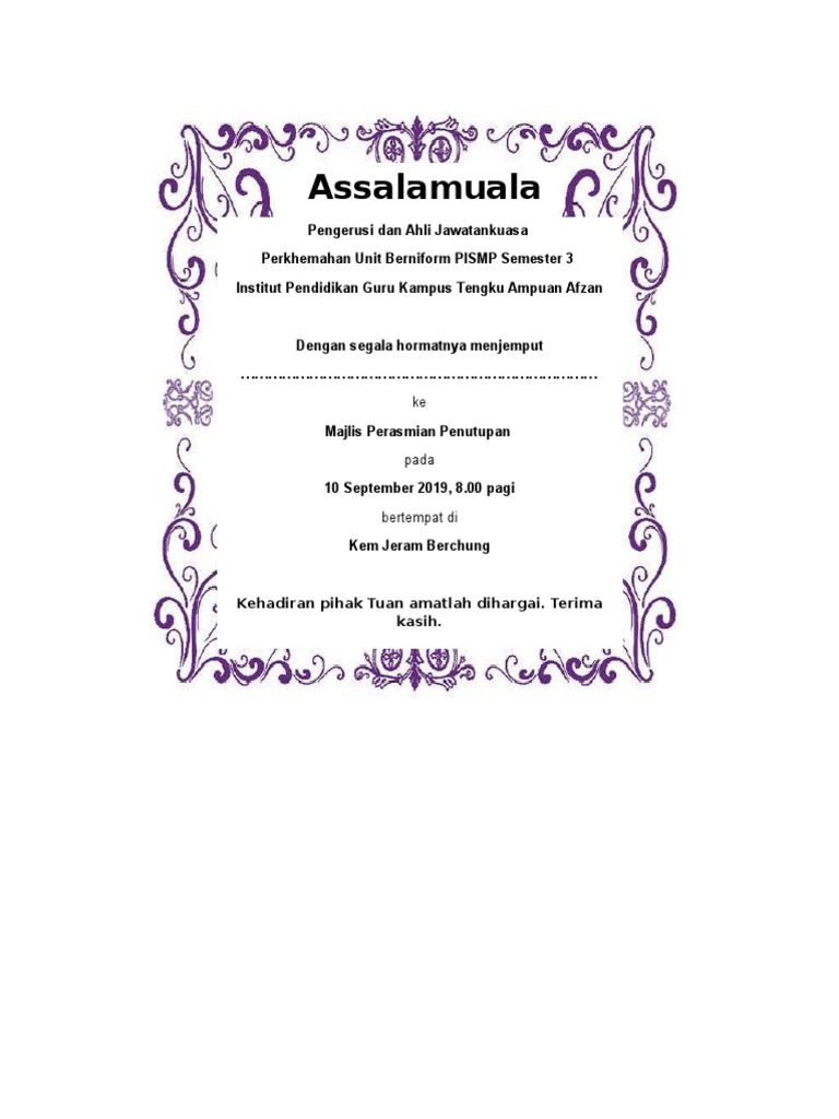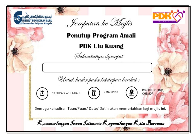 Contoh Kad Jemputan Majlis Penutupan