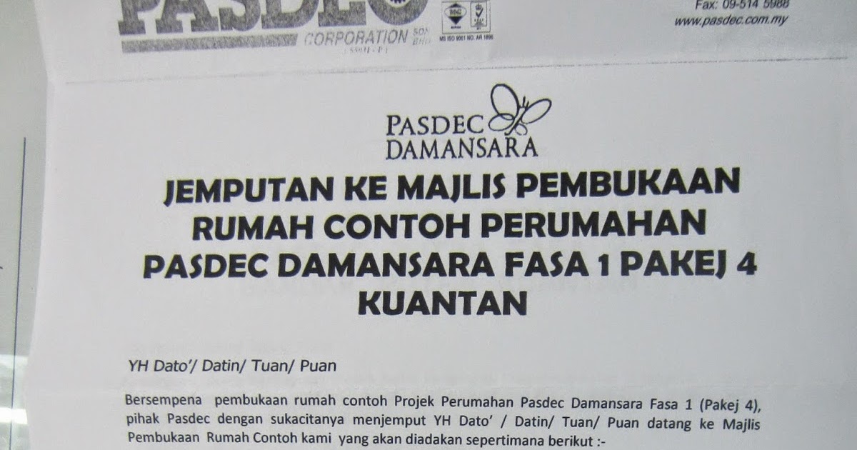Mehlah Baca Blog Kawan Jemputan Majlis Pembukaan Rumah Contoh Pasdec