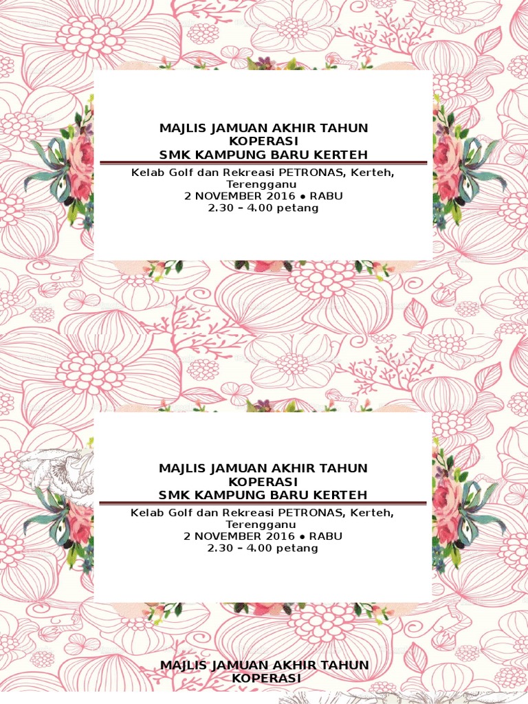 Majlis jamuan makan tahunan merupakan sambutan yang diadakan setiap akhir tahun bagi meraikan guru guru smk cheras. Kad jemputan persaraan untuk pengetua. Dengan pelbagai stok dan kemasan kertas anda pasti dapat apa yang anda inginkan pada harga yang sesuai dengan anda. Use the download button below or simple online reader.