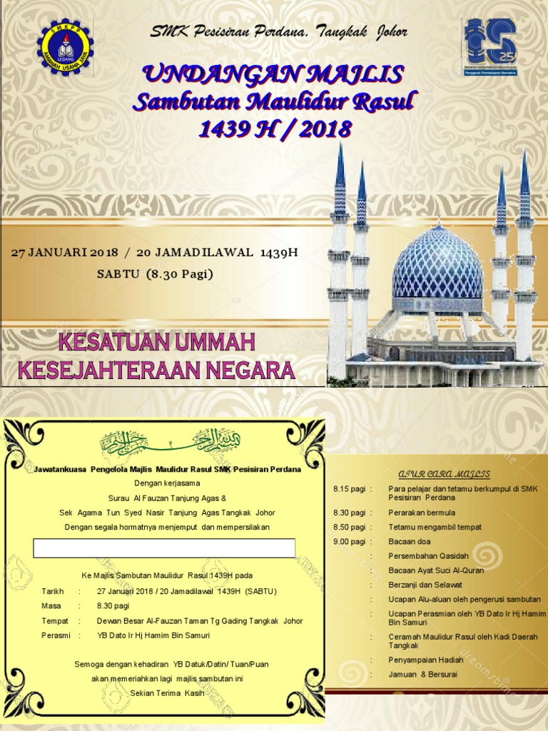 Surau Al Ehsan Kg Pt Bengkok Darat Kad Jemputan Majlis Sambutan Maulidur Rasul