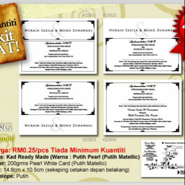 Kad Kahwin Murah 4x6 100 Pcs Rm50 Depan Belakang Full Colour Shopee Malaysia
