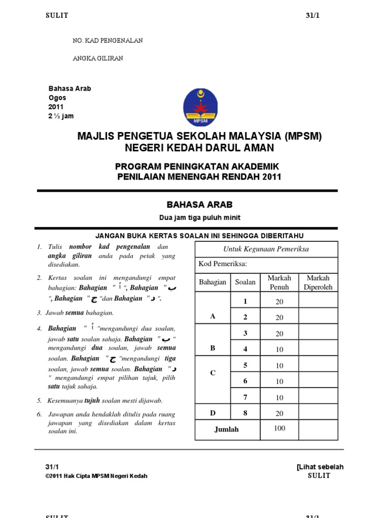 3 Borang Jordan Kpt Utama Spm Dalam Bahasa Arab Yang Telah Salinan Muka Hadapan Dan Belakang Terjemahan Sijil Pelajaran Malaysia Spm Dalam Bahasa Arab Yang Telah Pdf Document