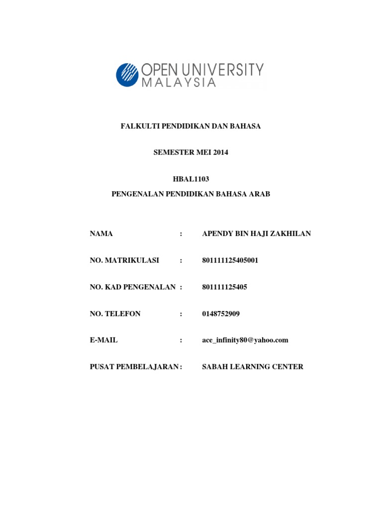 Hbal1103 Bahasa Arab Doc Document