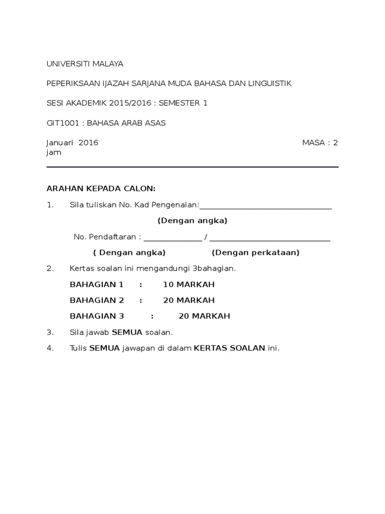 Contoh Pbs Stpm Bahasa Arab