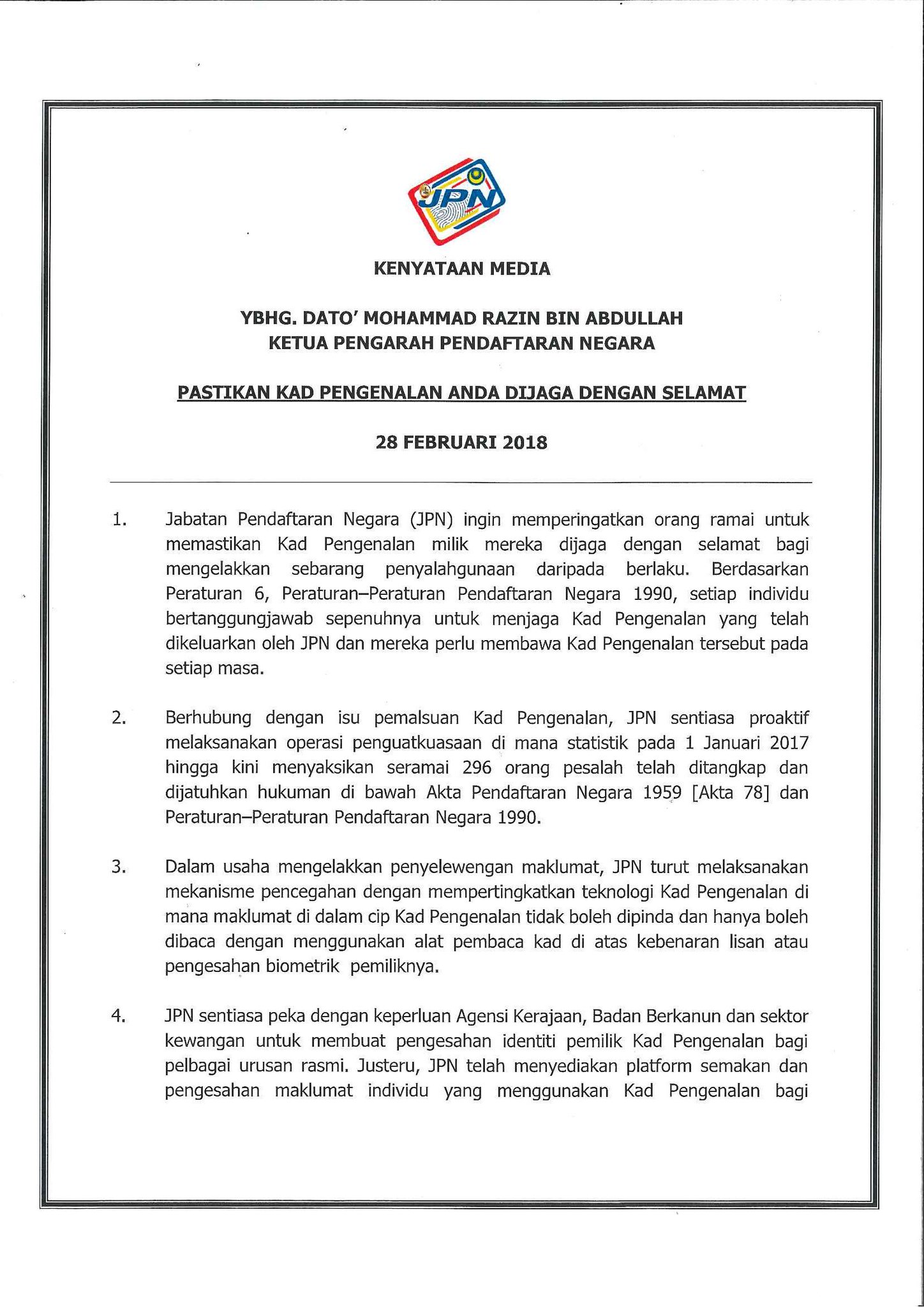 Jpn Malaysia On Twitter Kenyataan Media Ketua Pengarah Pendaftaran Negara Pastikan Kad Pengenalan Anda Dijaga Dengan Selamat